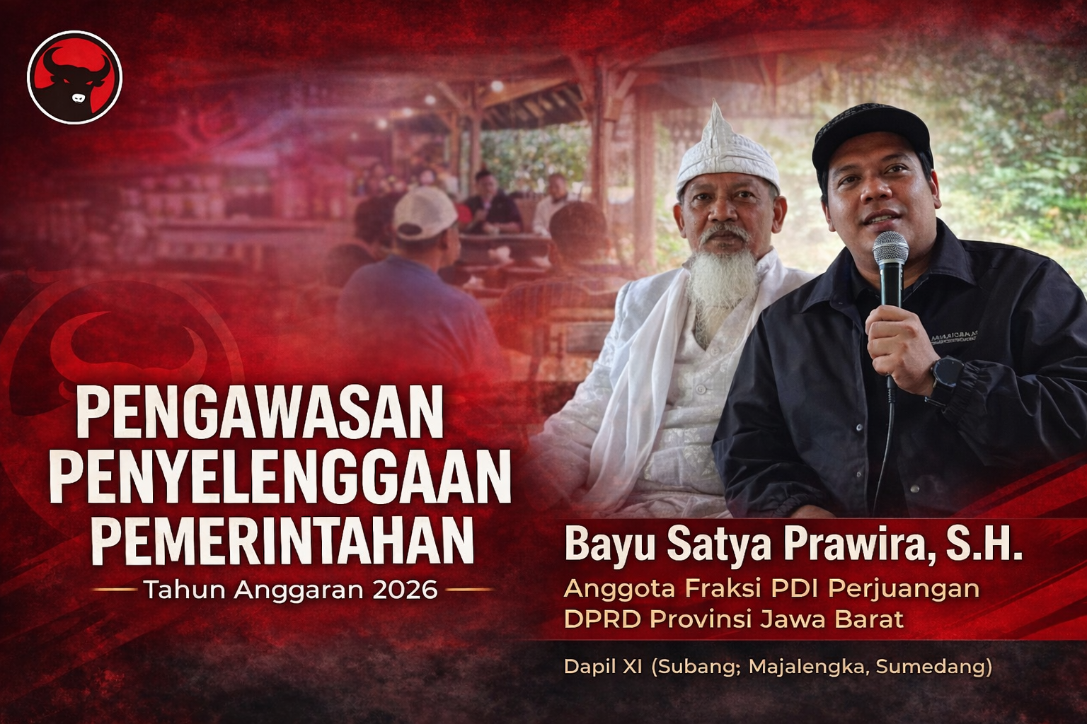 Subang, tiradar.id – Irwan Yustiarta yang dijuluki Mr. Jujur menghadiri agenda Sosialisasi Pengawasan Penyelenggaraan Pemerintahan yang digelar oleh Anggota Fraksi PDI Perjuangan DPRD Provinsi Jawa Barat, Bayu Satya Prawira (BSP), di Saung Lebe, Kolam Pemancingan Ciheuleut, Pasirkareumbi, Subang, Senin (20/4/2026).