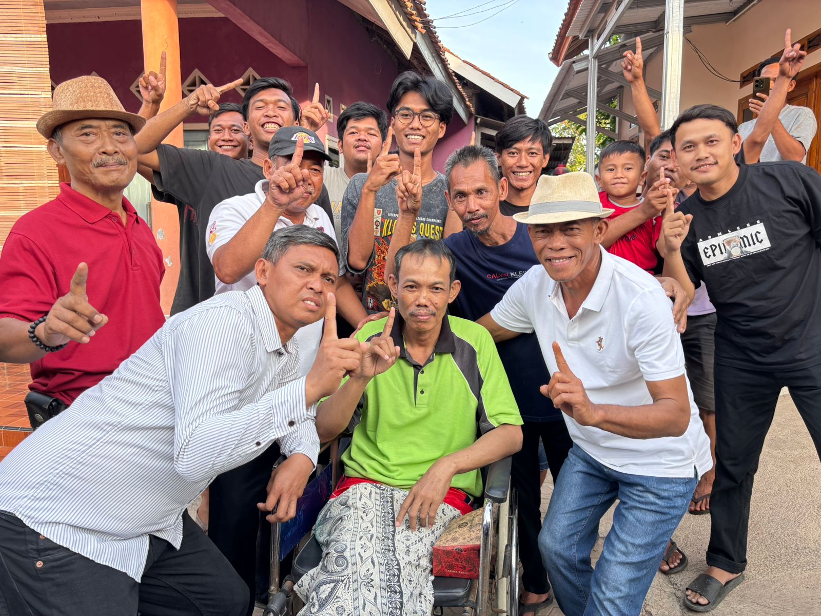 Tokoh Masyarakat Desa Mulyasari Kecamatan Binong, Awin (duduk di kursi roda) saat memberikan dukungan kepada kang Jimat. (dok. tim jimataku)